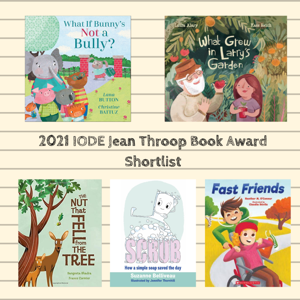 I was absolutely delighted to learn this week that What Grew in Larry’s Garden has been shortlisted for the 2021 IODE Jean Throop Book Award!