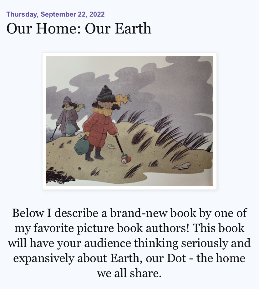 Hanna brings great depth and sensitivity to her reading and interpretation of texts of all kinds, including picture books. I respect her opinion, so was particularly happy when she chose to feature Here: The Dot We Call Home on her blog.