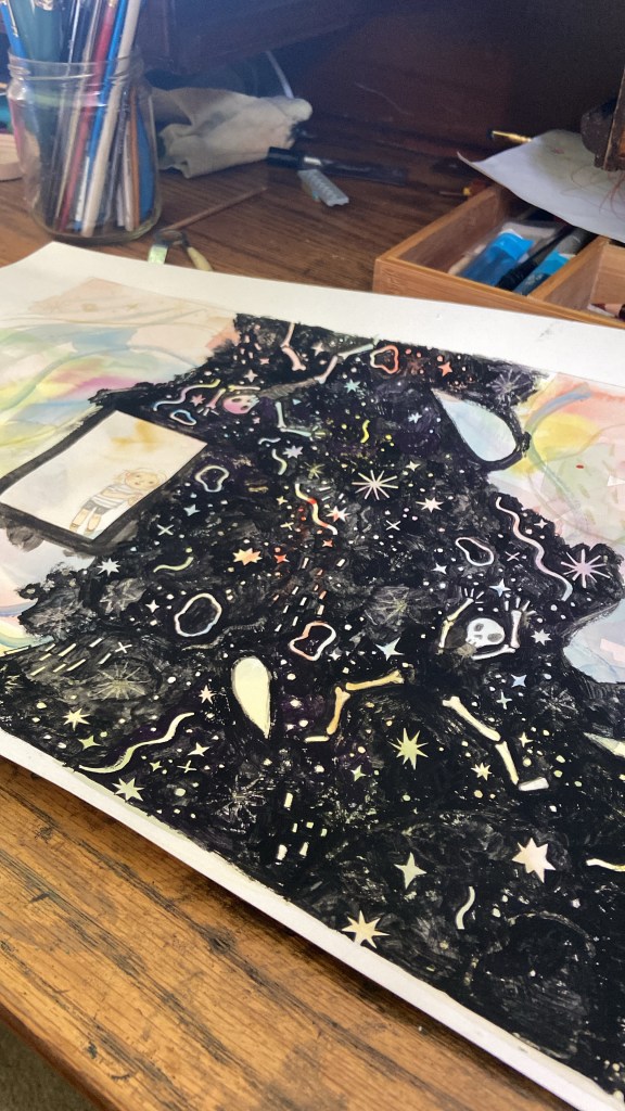 The biggest struggle for me was not a specific section but finding ways throughout to connect a child’s experience of darkness with similar things from nature.